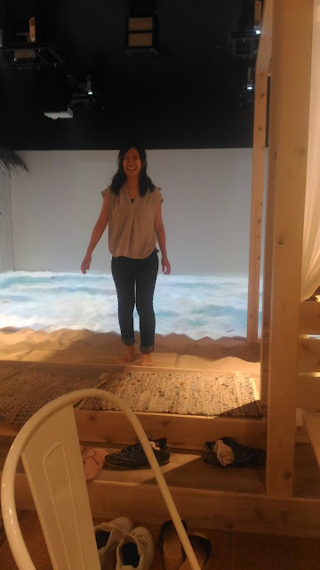 Il y avait aussi une fausse plage avec du sable et une mer interactive.